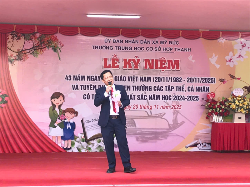 Hòa trong không khí hân hoan của cả nước hướng về ngày Nhà giáo Việt Nam 20–11, trường THCS Hợp Thanh long trọng tổ chức Lễ kỷ niệm 20–11 trong không khí trang trọng, ấm áp. Buổi lễ kỷ niệm được tổ chức trang trọng với sự tham dự của Ban Giám hiệu, nguyên lãnh đạo nhà trường, cán bộ – giáo viên – nhân viên, đại diện phụ huynh và toàn thể học sinh. Nhằm tri ân các thầy cô giáo – những người đã và đang tận tâm cống hiến cho sự nghiệp trồng người.