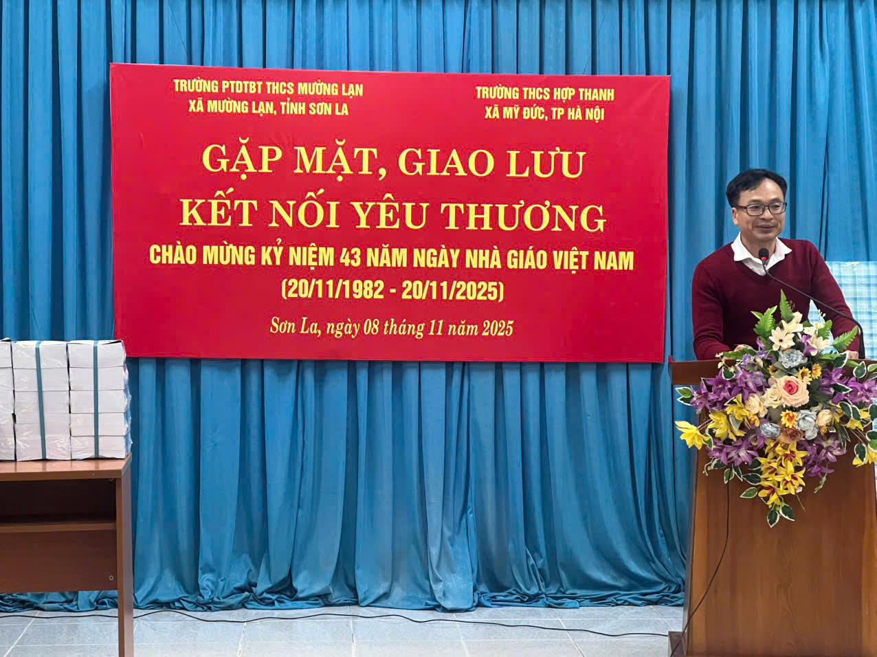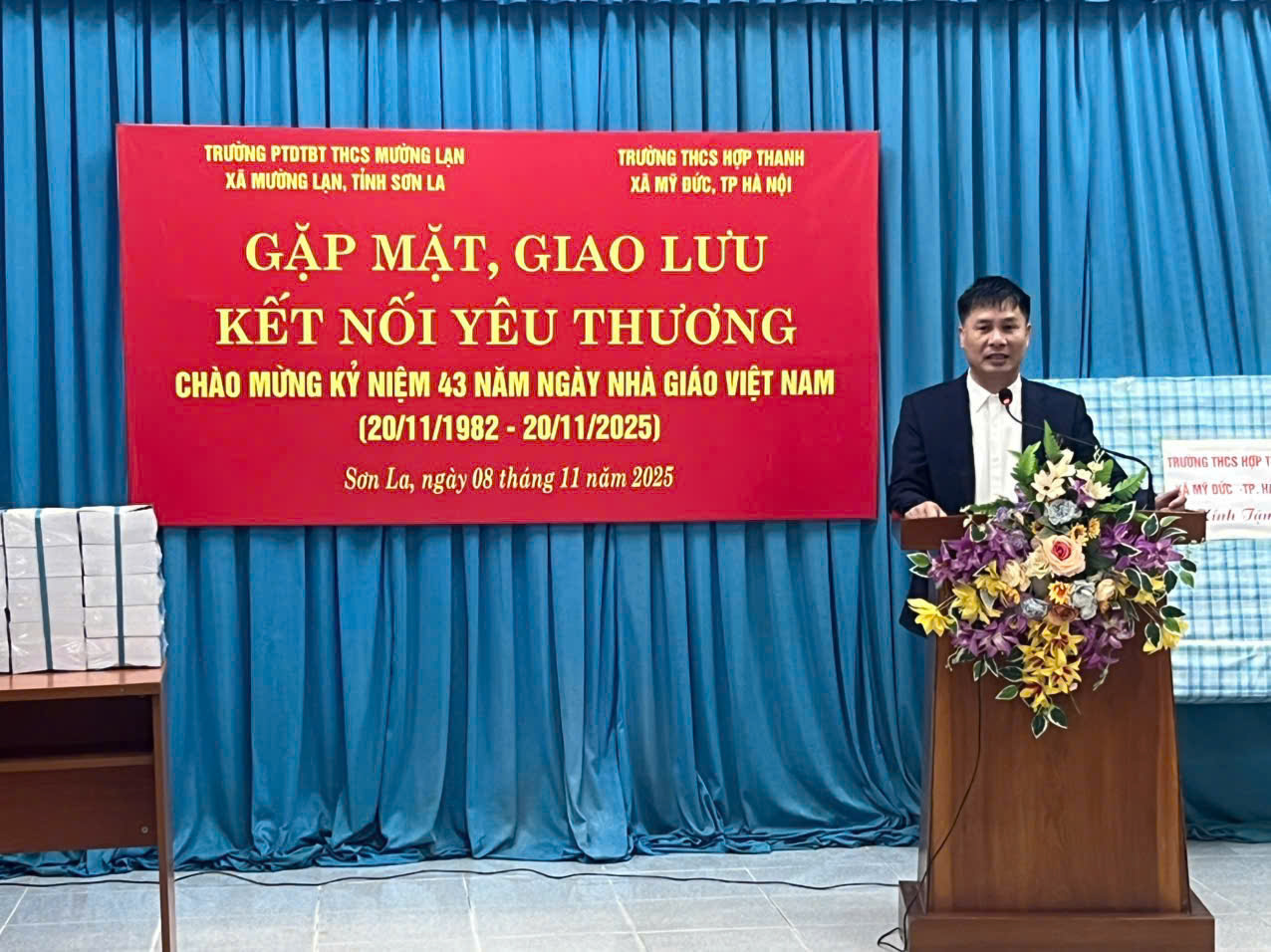 Trong không khí ấm áp của những ngày tháng 11, Chào mừng kỷ niệm 43 năm Ngày Nhà giáo Việt Nam (20/11/1982 – 20/11/2025) thực hiện Chương trình công tác năm học 2025 - 2026, phát huy truyền thống đoàn kết, yêu thương của nhà trường và cụ thể hóa sáng tạo Chương trình “Nhà trường cùng chung tay phát triển, thầy cô cùng sẻ chia trách nhiệm” do Sở GD và ĐT Hà Nội phát động, Trường THCS Hợp Thanh, xã Mỹ Đức, Thành phố Hà Nội đã tổ chức Chương trình Gặp mặt, giao lưu, kết nối yêu thương với thầy và trò Trường PTDTBT THCS Mường Lạn, xã Mường Lạn, tỉnh Sơn La.